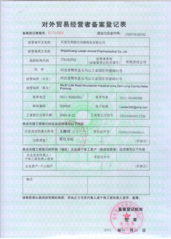 對外貿(mào)易經(jīng)營者備案登記表