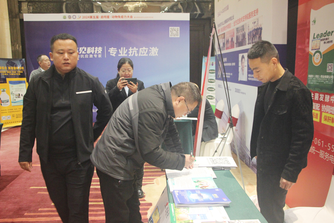行業(yè)領(lǐng)導(dǎo)、嘉賓到利德爾藥業(yè)展位上紛紛駐足,以及終端養(yǎng)殖業(yè)者進行咨詢洽談。在展位上,利德爾藥業(yè)展示了其最新的動物免疫保護產(chǎn)品,這些產(chǎn)品均經(jīng)過嚴(yán)格的科學(xué)研究和實驗驗證,旨在為動物提供更全面、更高效的免疫保護。