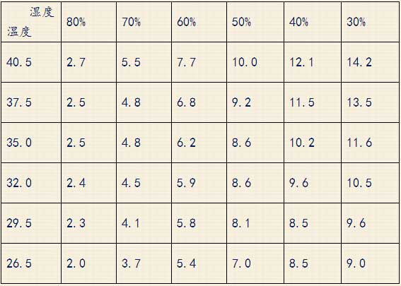 生產(chǎn)中不同溫濕度情況下實(shí)際降溫效果如下: