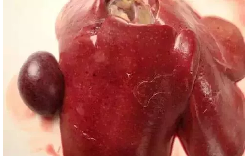 壞死性腸炎蛋雞肝臟布滿針尖大小的黃白色壞死灶,脾臟點(diǎn)狀出血、腫大