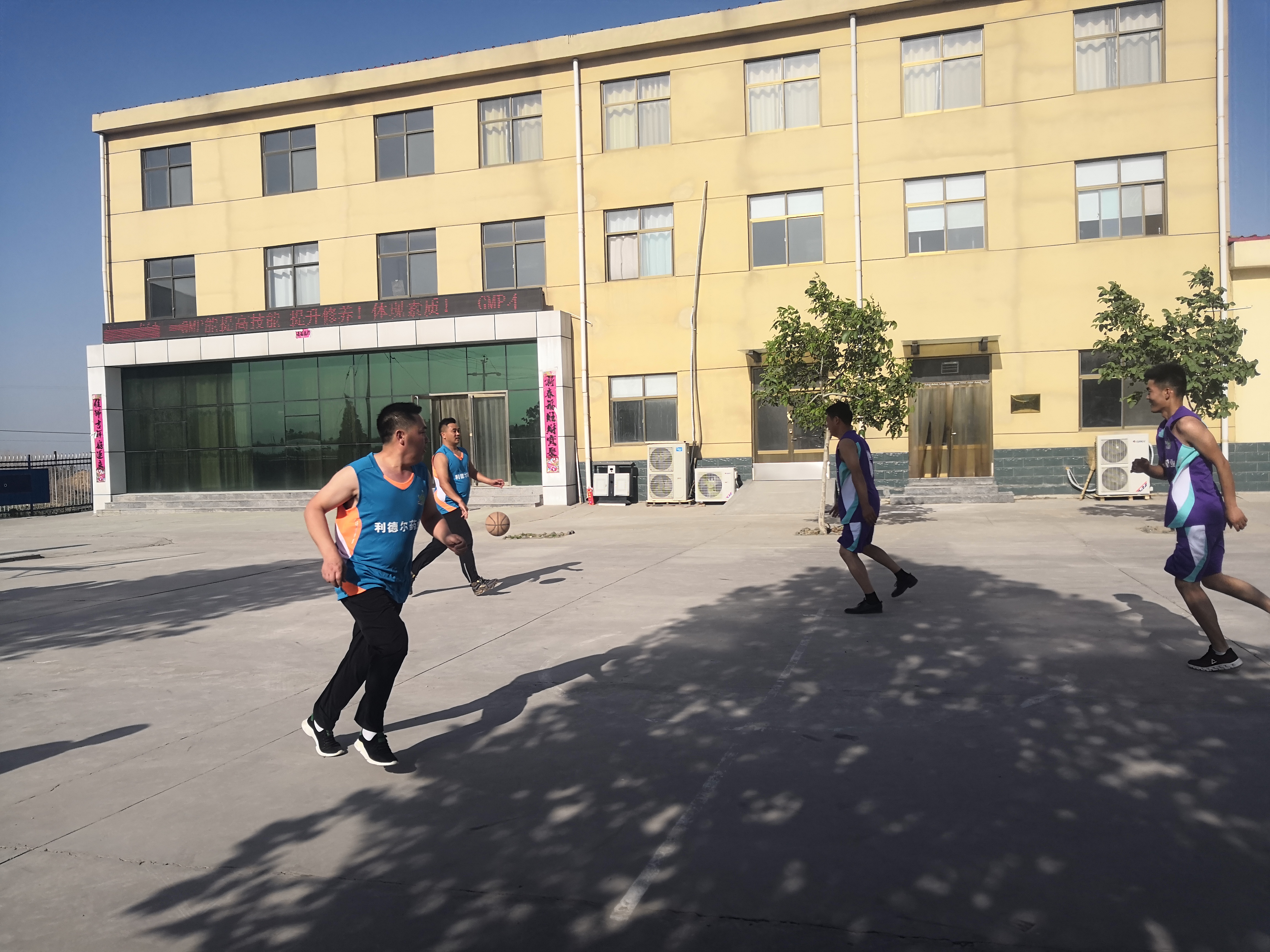 下午,大家不怕烈日當(dāng)頭,反芻部和禽藥部展開(kāi)了一場(chǎng)籃球大賽,他們汗流浹背,在籃球場(chǎng)上角逐,在一次次 的歡呼中進(jìn)球,拼搏激烈,籃球在高中跳躍,跟隨著他們身影在球場(chǎng)穿梭,他們大聲的叫喊著,籃球在他們的傳遞中進(jìn)了籃筐......... ,一個(gè)小時(shí)下來(lái),熱和累讓他們快樂(lè)著。!