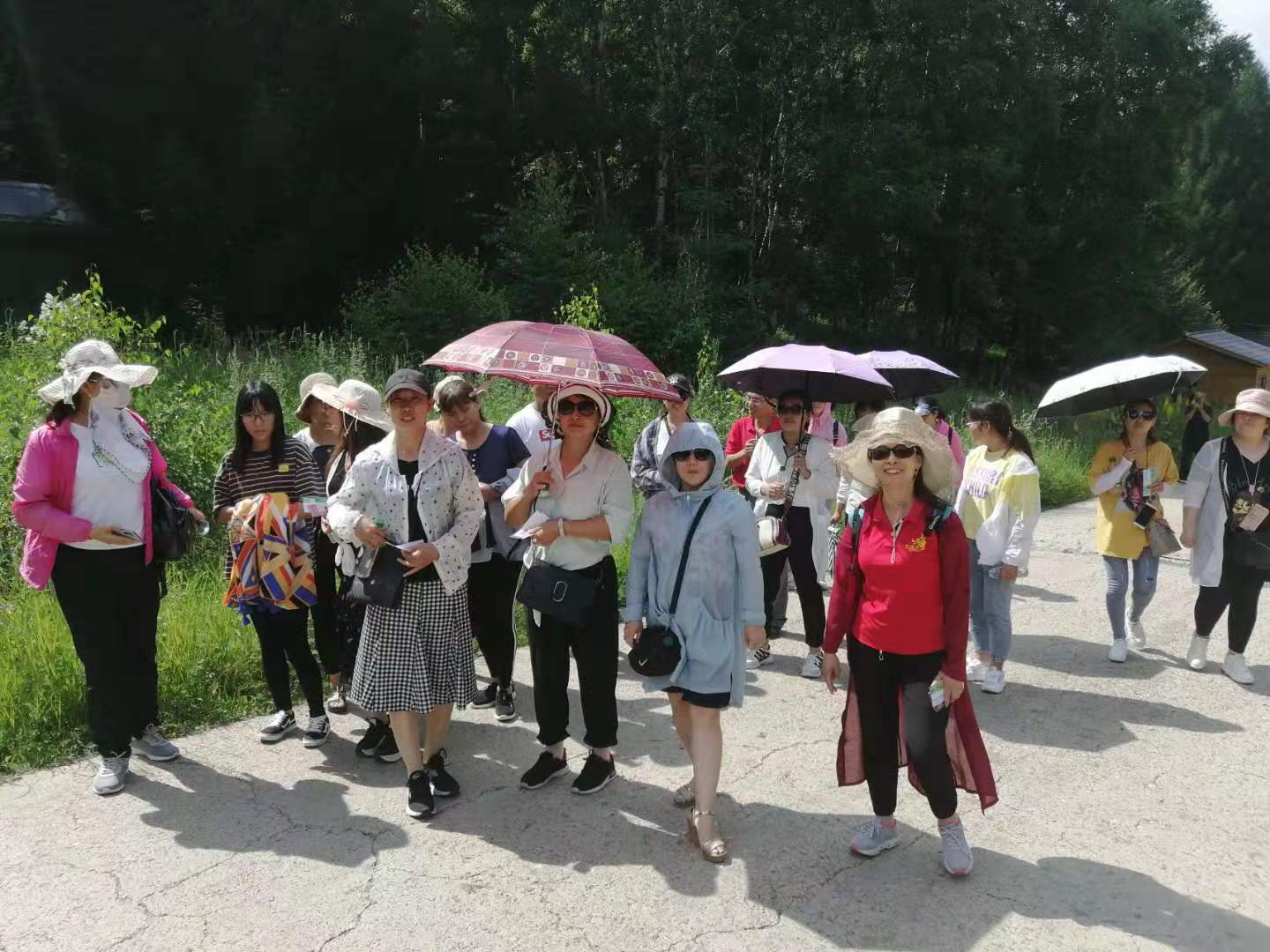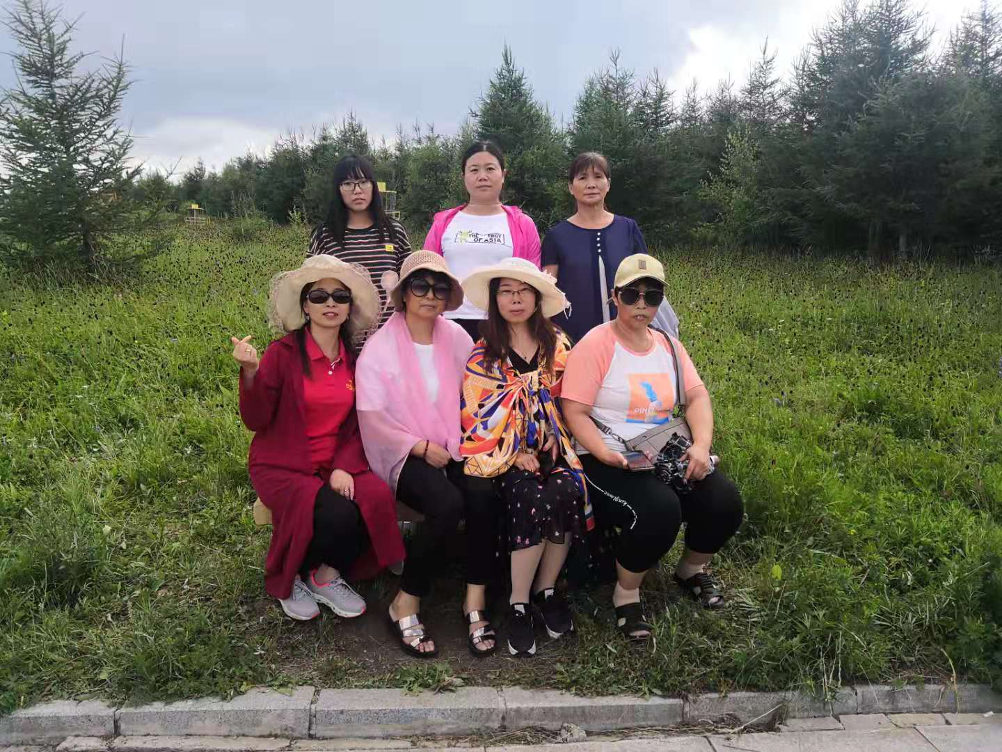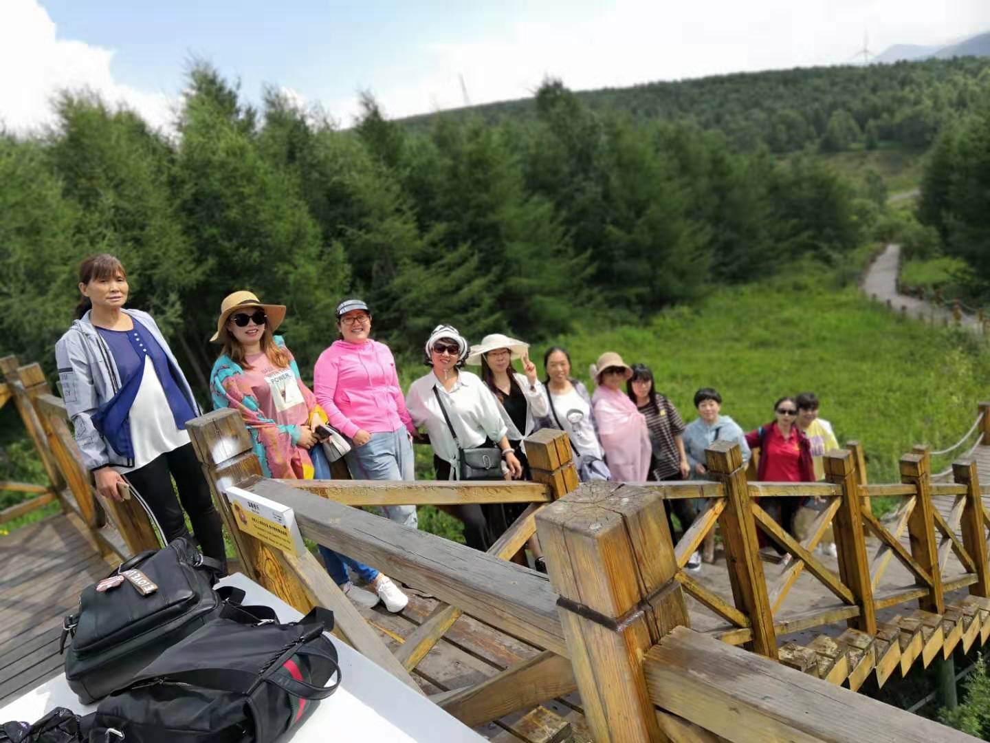 由于崇禮為了準(zhǔn)備2022年的冬季奧運會,到處在修路,所以路上耽擱了點時間,下午2點到達(dá)翠屏山,這里可是天然額氧吧,到處蒼松勁挺,山巒蜿蜒、空氣清新、野花爛漫。您不僅可以觸摸明長城遺址的古韻,觀賞風(fēng)車矩陣的雄偉壯觀,體驗林海松濤的樹聲鳥鳴,欣賞山頂花海的絢爛多彩,感受電車穿越在蜿蜒的山林間,涼風(fēng)嗖嗖的灌耳,一排排的松樹甩在了身后,讓你夏日間感受清涼的絕境。登上山頂后,大家不顧平日的羞澀,擺出各種姿勢,美拍,玩的時間感覺很短,沒有多久,兩個多小時過去了,在游覽期間可以看到運動員在訓(xùn)練,為了冬奧會做準(zhǔn)備。之后乘車前往壩上草原。