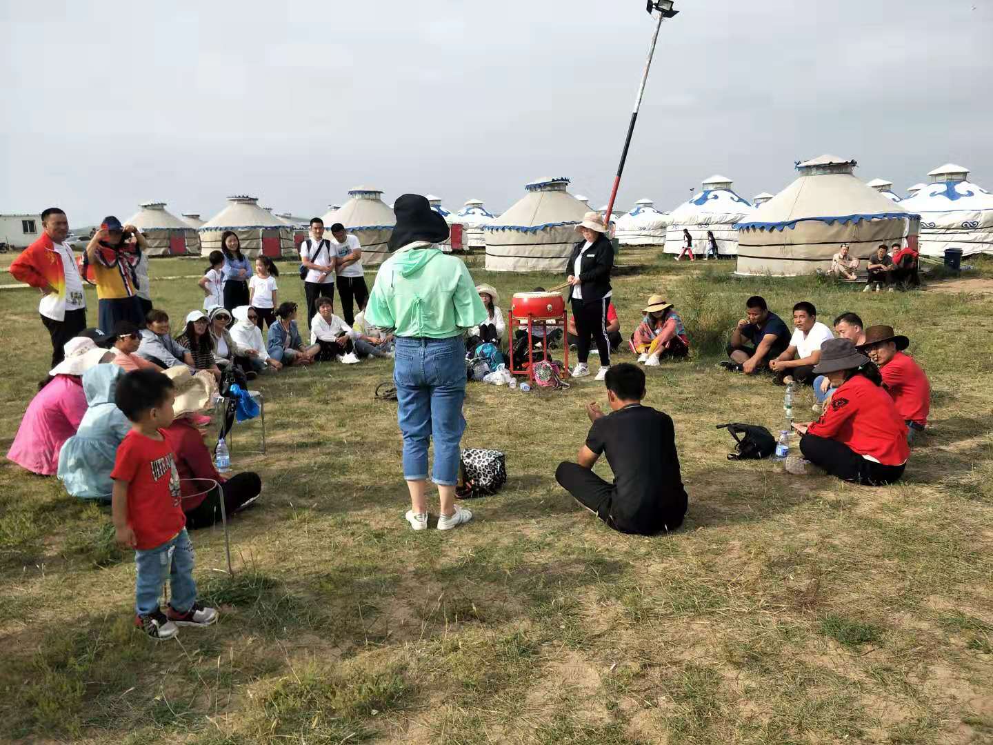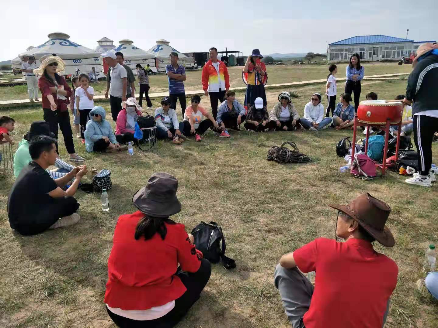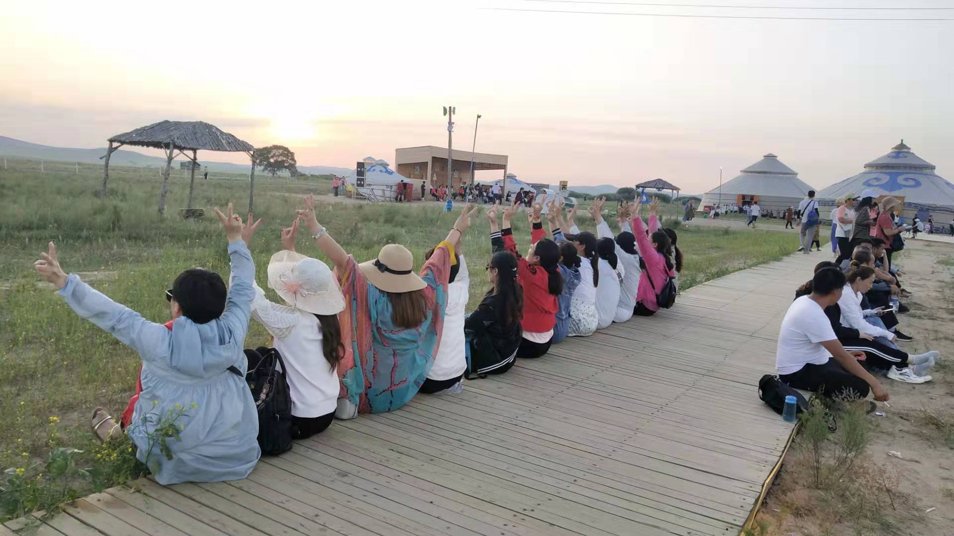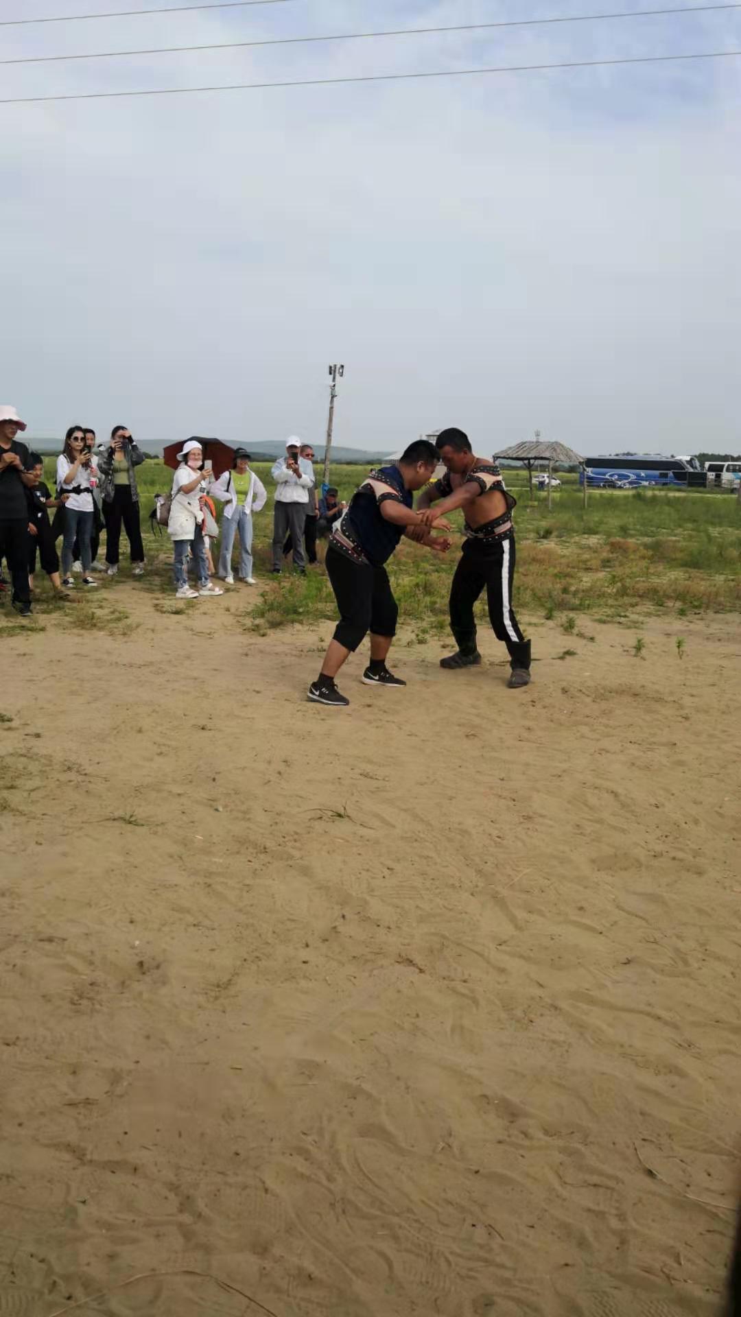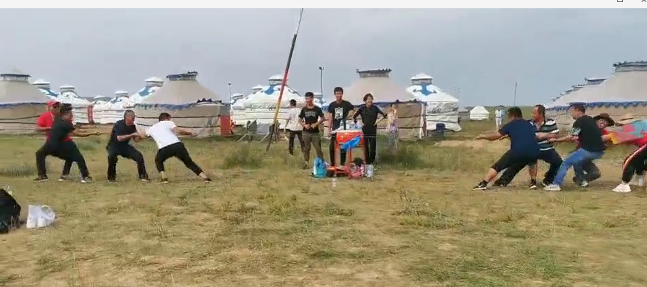 中午抵達(dá)蒙古大營,途徑忽必烈影視城和梳妝樓,盛裝熱情的草原小伙策馬揚鞭,遠(yuǎn)遠(yuǎn)的迎著我們的車過來,為我們接風(fēng)洗塵,獻上哈達(dá)和下馬酒。中午品嘗草原的蝎子骨莜面宴,營地里的項目比較多,騎馬的驚魂,摔跤感受蒙古人彪悍,眾人蕩沙橋的刺激,步調(diào)不一致,便會被掉下橋,射箭,穿蒙古民族服拍照等,感受蒙古的文化氣息。我們來的時候自備了繩子和大鼓等裝備,拔河比賽,尤其于廠長老當(dāng)益壯,也不示弱參其中,在呼喊口號聲中使勁全身力氣,整個隊伍,身體向后傾斜。擊鼓傳花,在鼓聲中花兒在每個人的手中飛舞傳遞,就像一塊燙手的山芋,趕緊的拋給下一個人,鼓;湔l家,就表演一個節(jié)目了,好多游客過來圍觀,有的游客也參與進來和我們一起進行游戲,踩氣球等。晚上觀看名族演出和篝火晚會。讓您忘記城的喧囂與疲憊,感受草原的廣闊與放縱。