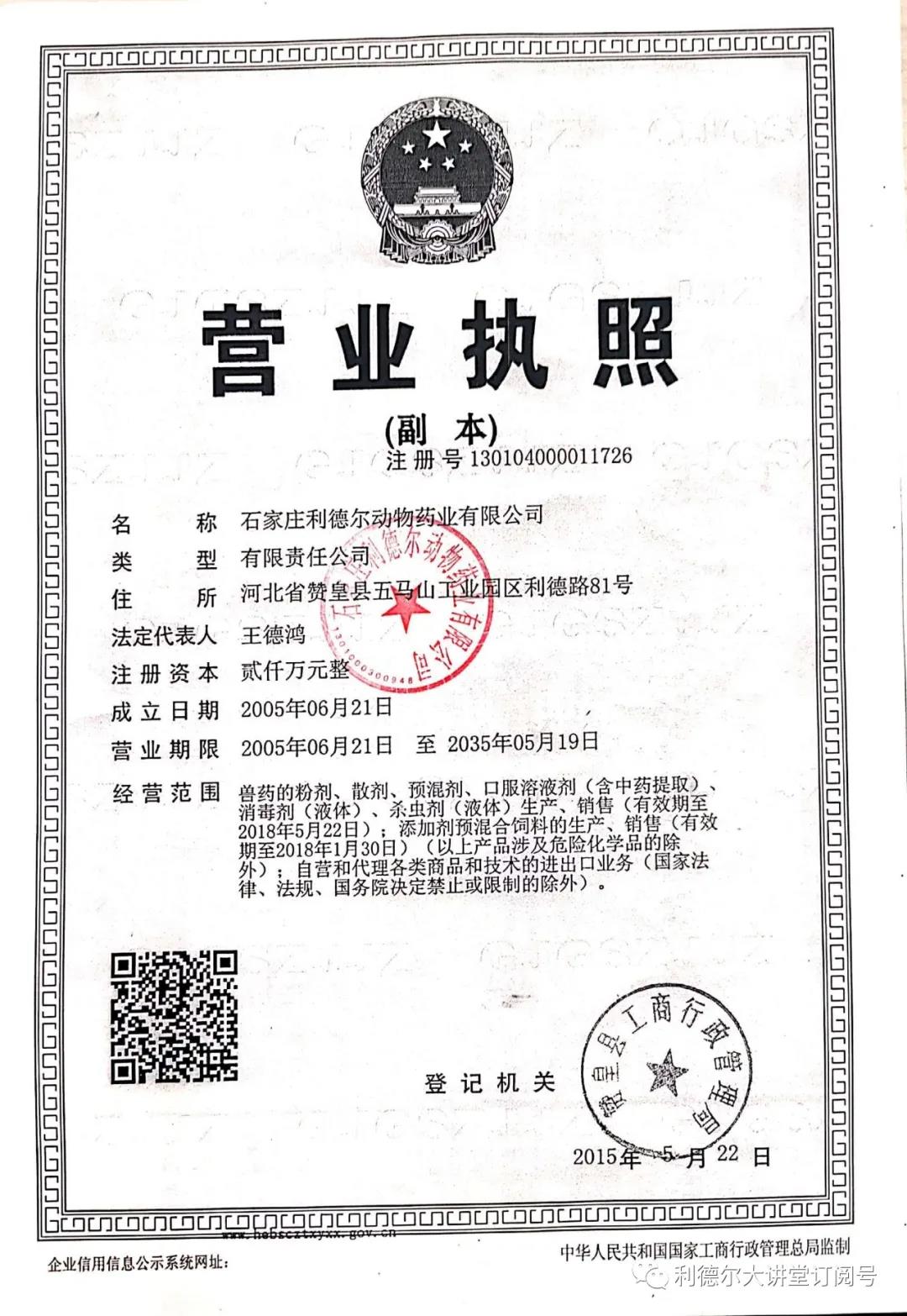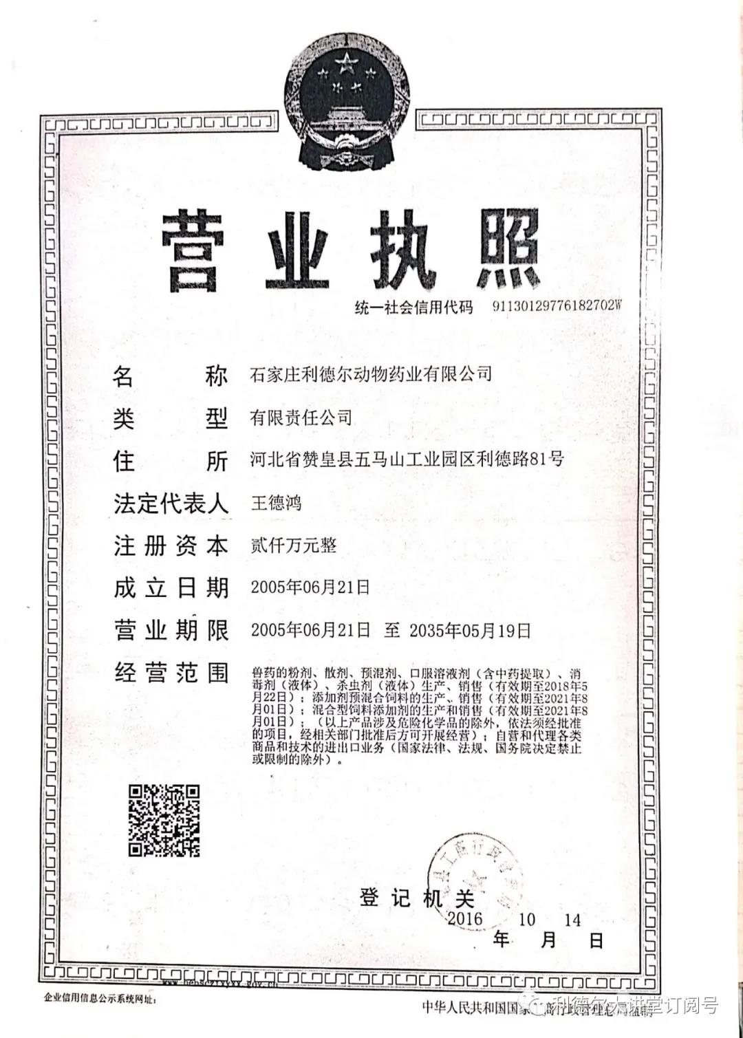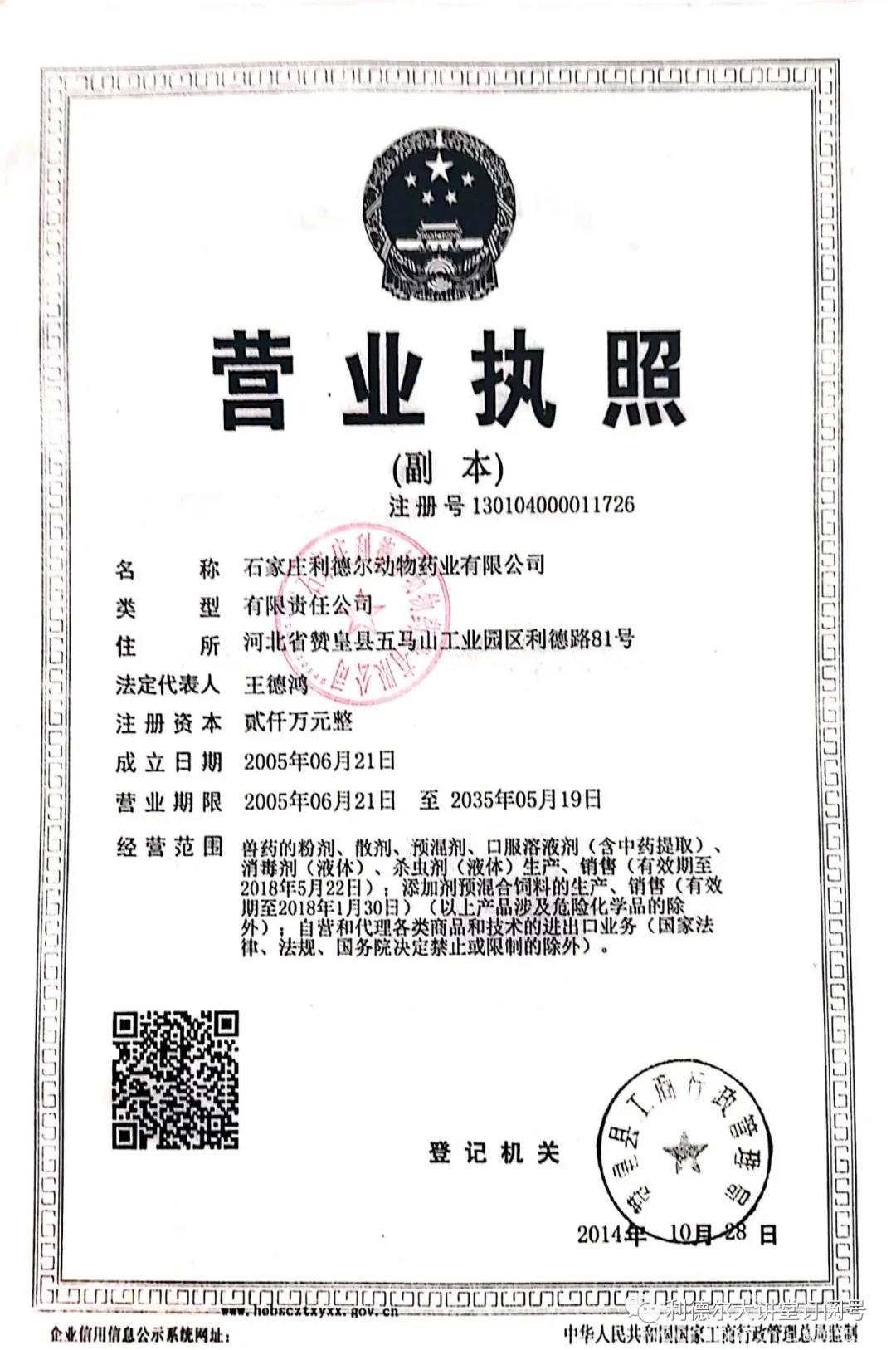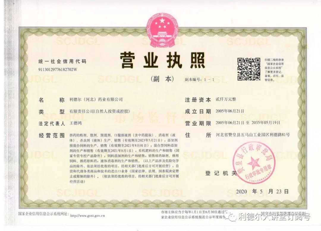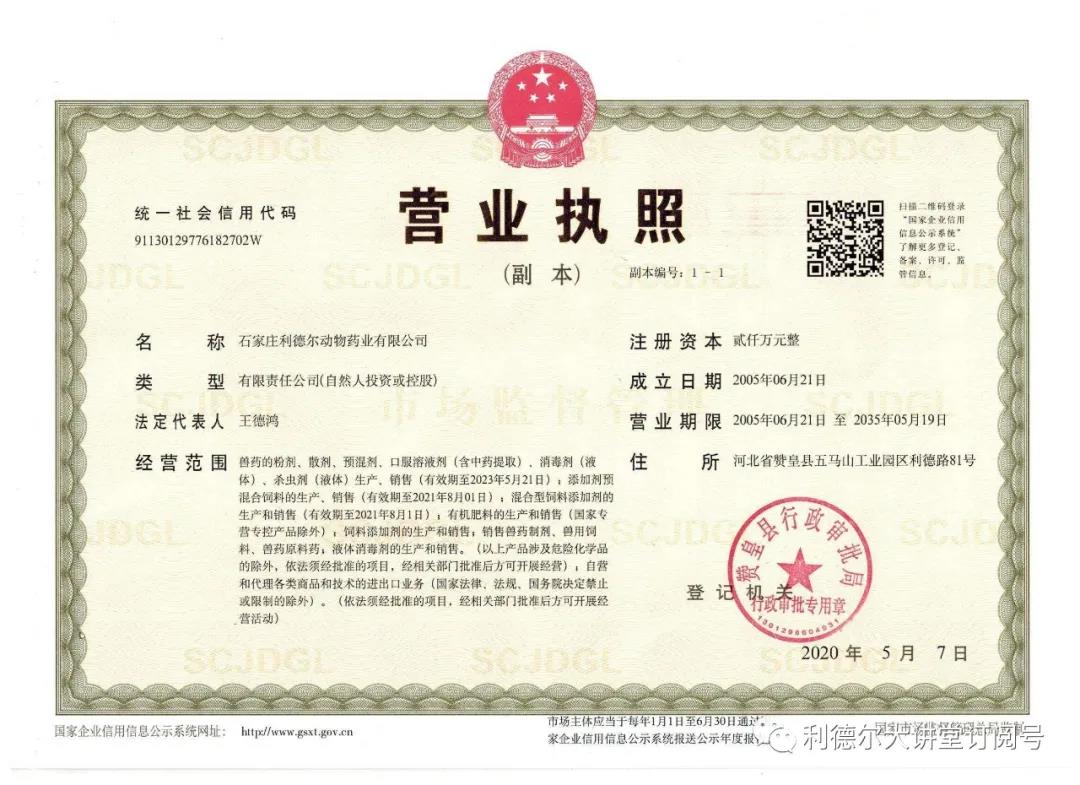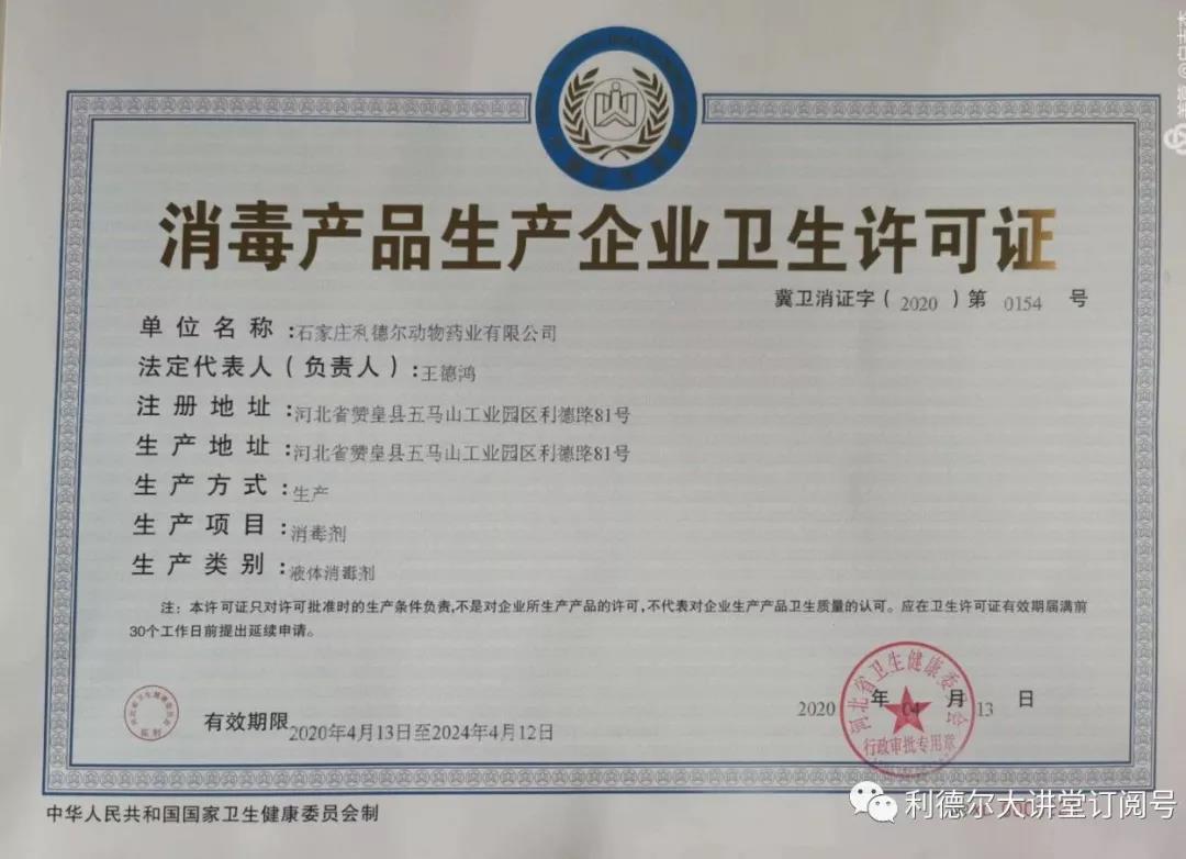 2020年度突如其來(lái)的疫情,勇?lián)?zé)任的利德?tīng)柸松暾?qǐng)了衛(wèi)健委的消毒產(chǎn)品的經(jīng)營(yíng)許可,用于生產(chǎn)人民所急需的消毒產(chǎn)品。經(jīng)營(yíng)范圍再一次擴(kuò)充。
