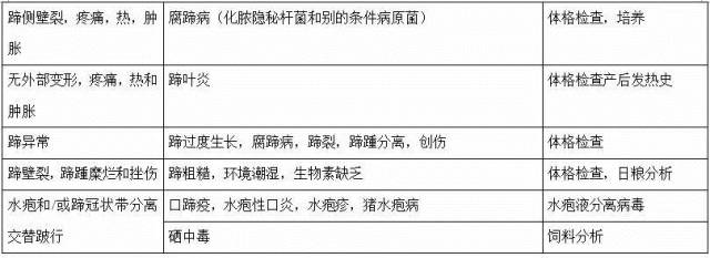 引起斷奶豬至成年豬跛行的疾病(點(diǎn)擊可放大)