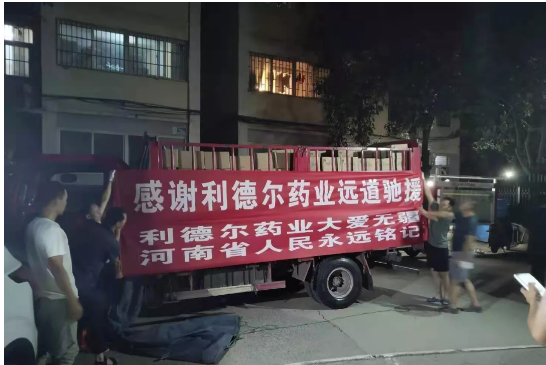 利德爾藥業(yè)董事長王德鴻先生,立即給工廠下達指令,準備84消毒液發(fā)往河南災(zāi)區(qū)。廠區(qū)后勤人員和工人,接到通知后,加班加點,爭取短時間生產(chǎn)出大量的消毒液,內(nèi)勤多方聯(lián)系發(fā)貨物流,司機一聽是救災(zāi)物資,毫不猶豫,立即答應(yīng),火速將物資送往災(zāi)區(qū)。